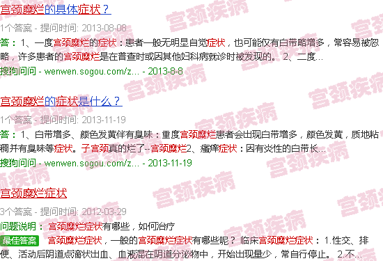 2.宫颈糜烂的症状:主要症状是白带分泌物增多,常为脓性。可能有下腹部和腰骶部疼痛和膀胱刺激。